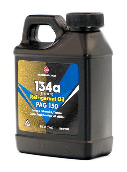 - FJC PAG 150 Oil can be used in R-134a mobile A/C systems requiring 150 centistokes viscosity PAG oil.