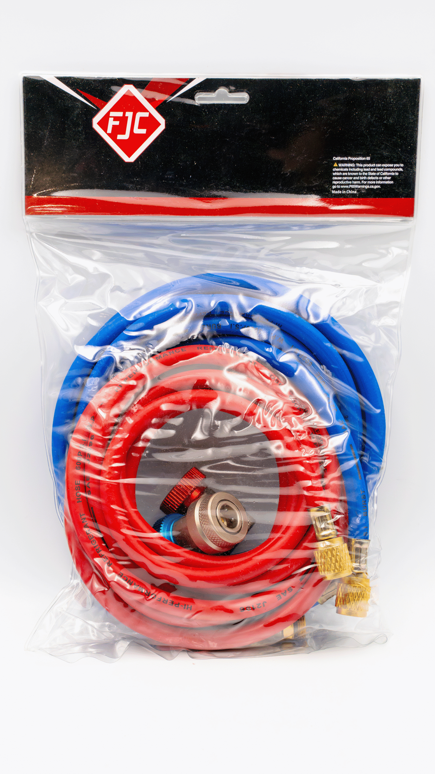 FJC offers an extensive line of refrigerant charging hoses in a variety of lengths. Made of high-quality brass and rubber, these tools are reusable and durable and will provide a tight connection, ensuring safety and convenience when testing, diagnosing or charging an AC system.