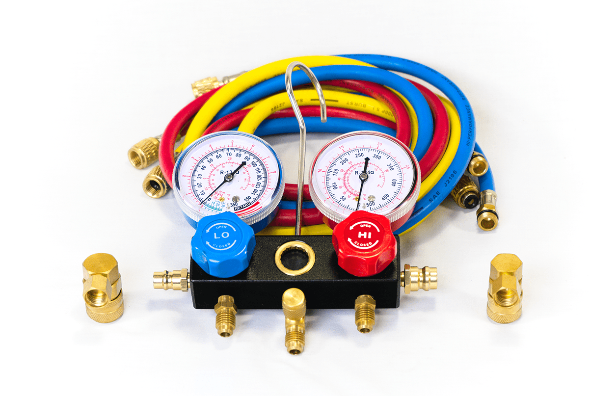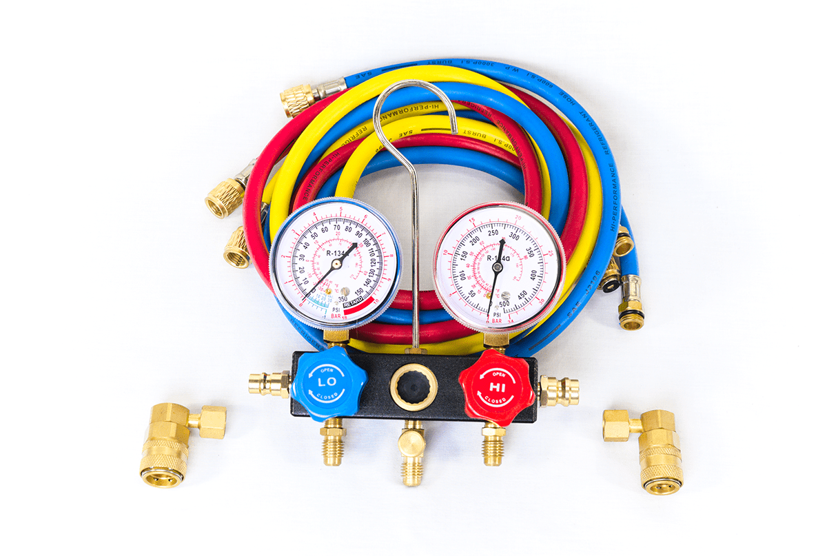 R-134a Aluminum Manifold with 72″ Hoses and Quick Couplers