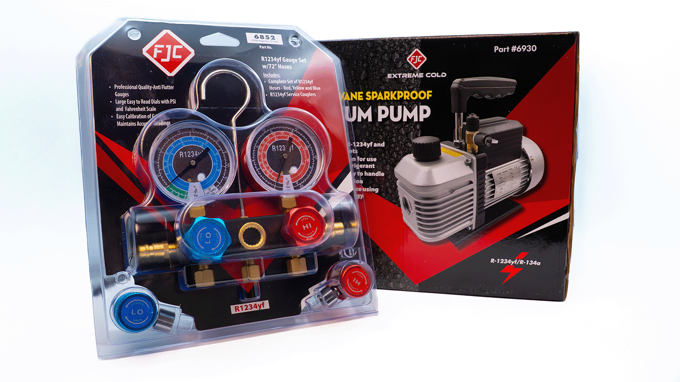 FJC’s Vacuum pump and manual gauge set assortments allow effective repair, discharge and maintenance of automotive air conditioners. Our innovative sets are reliable and long lasting.